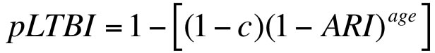 - pLTBI is based on the patient’s age, the patient’s contact status (c), and the annual risk of infection (ARI) in the country.